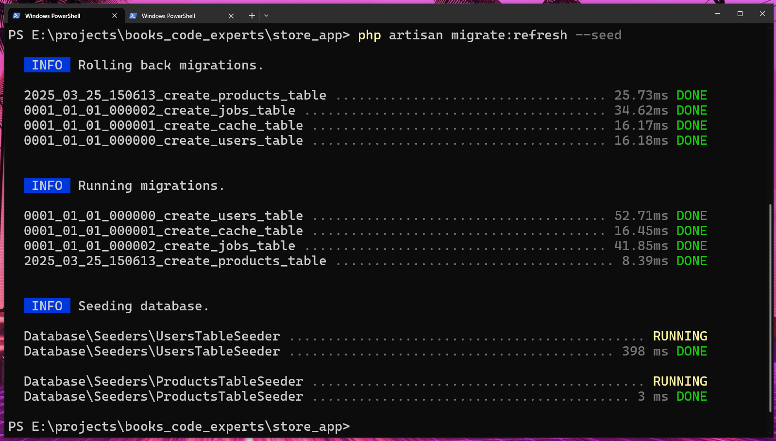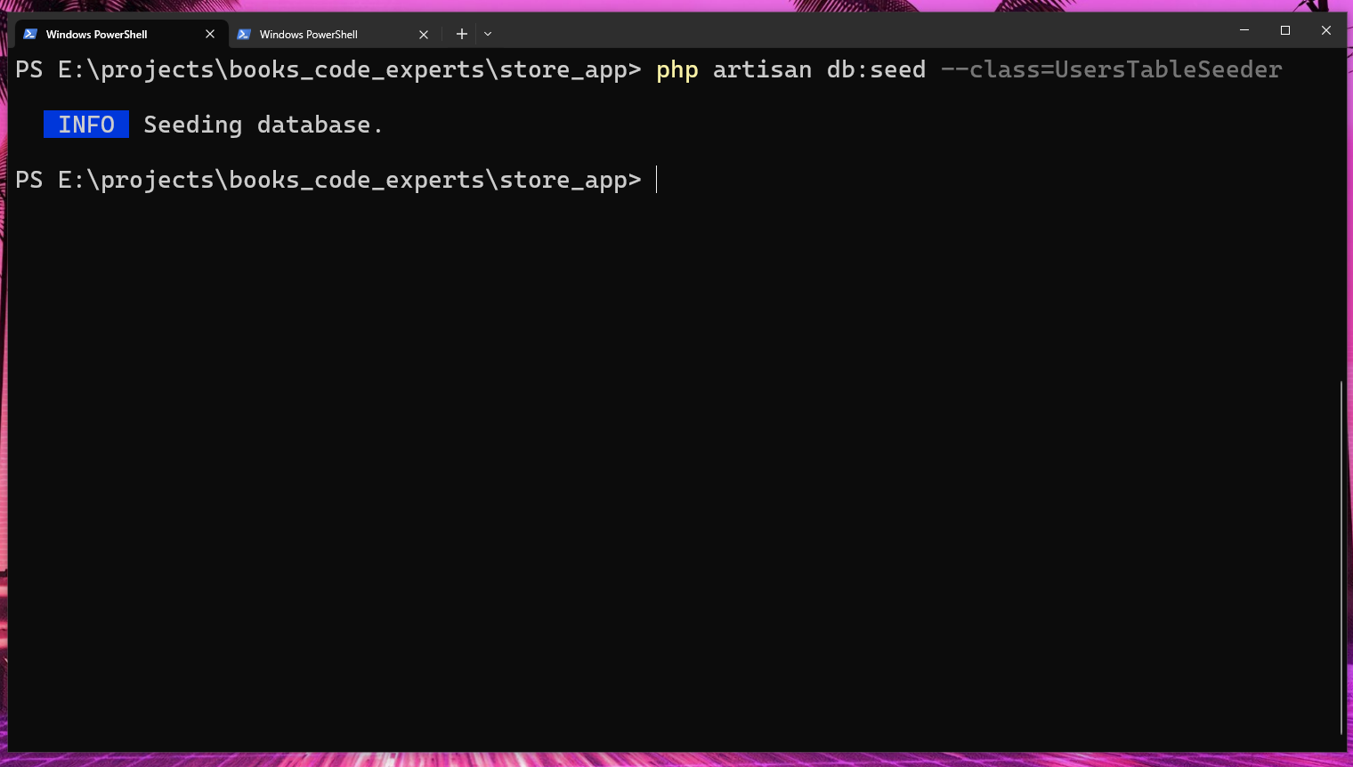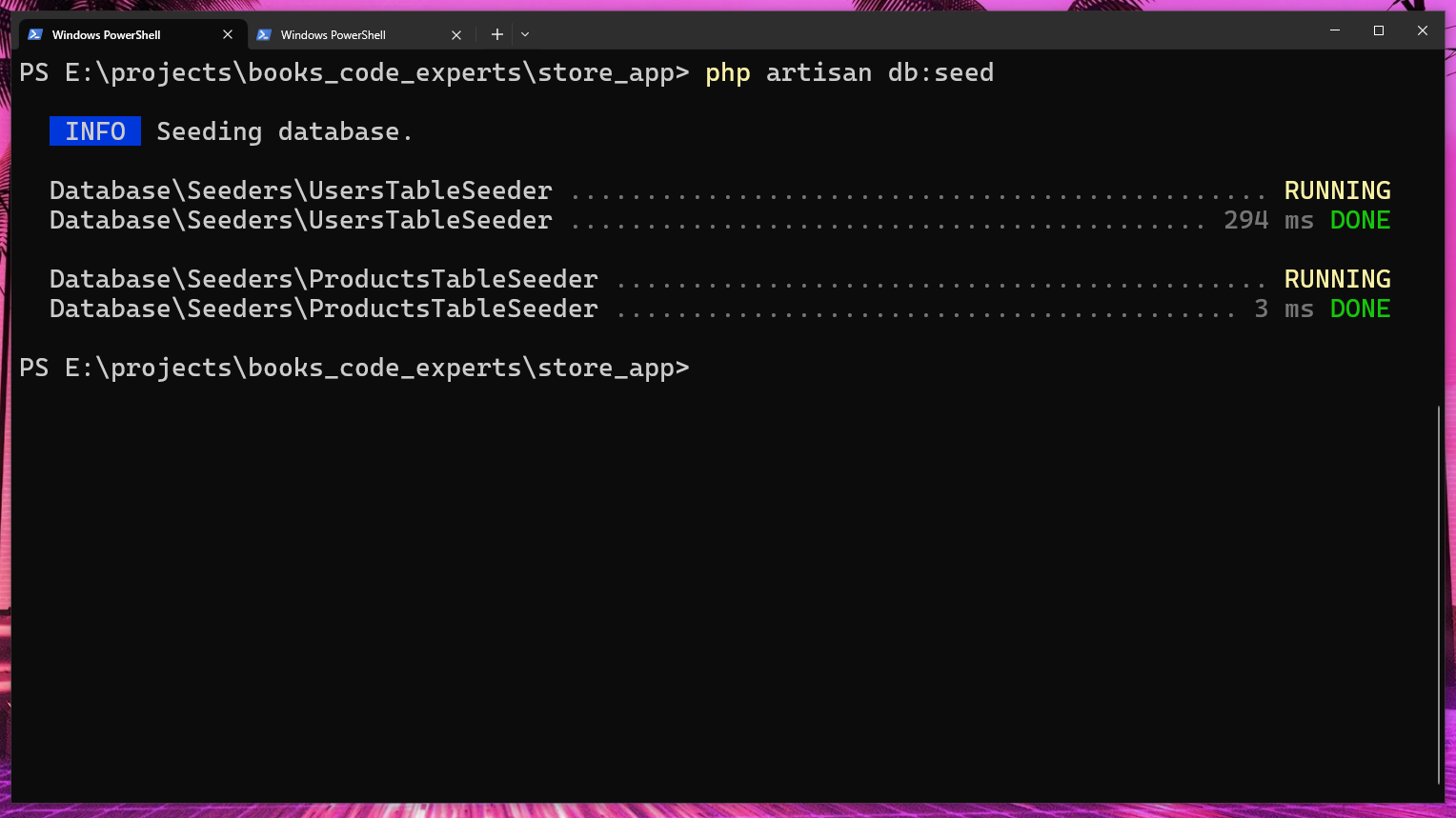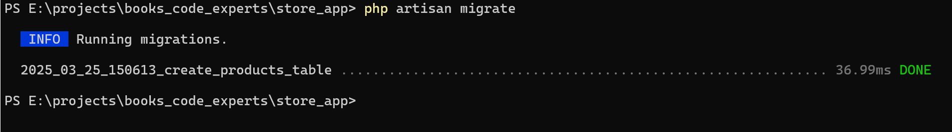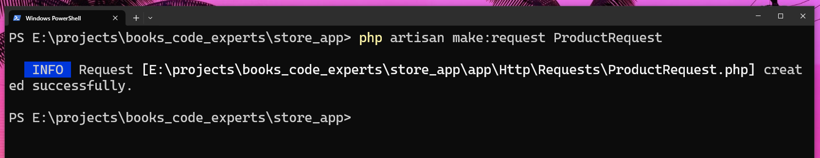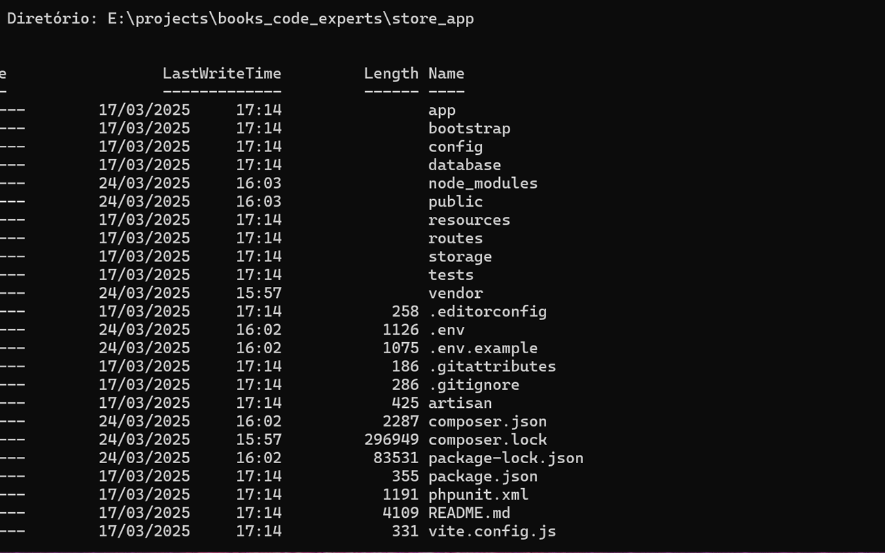Com isso o instaldor baixará todo o projeto Laravel, instalará as dependências deste projeto automaticamente e jogará tudo dentro da pasta store_app