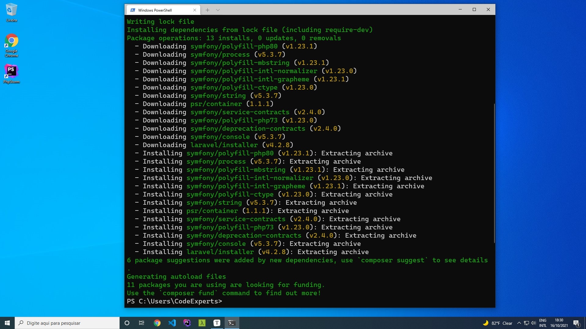 Tendo a certeza que o Composer está em sua máquina, execute o comando abaixo em seu terminal: