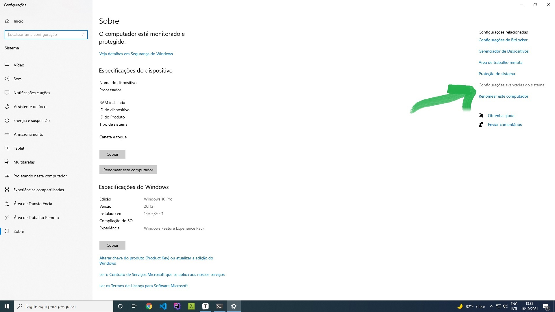 Após isso, acesse o menu Configurações Avançadas do Sistema, no menu lateral direito da sua tela. Veja abaixo: