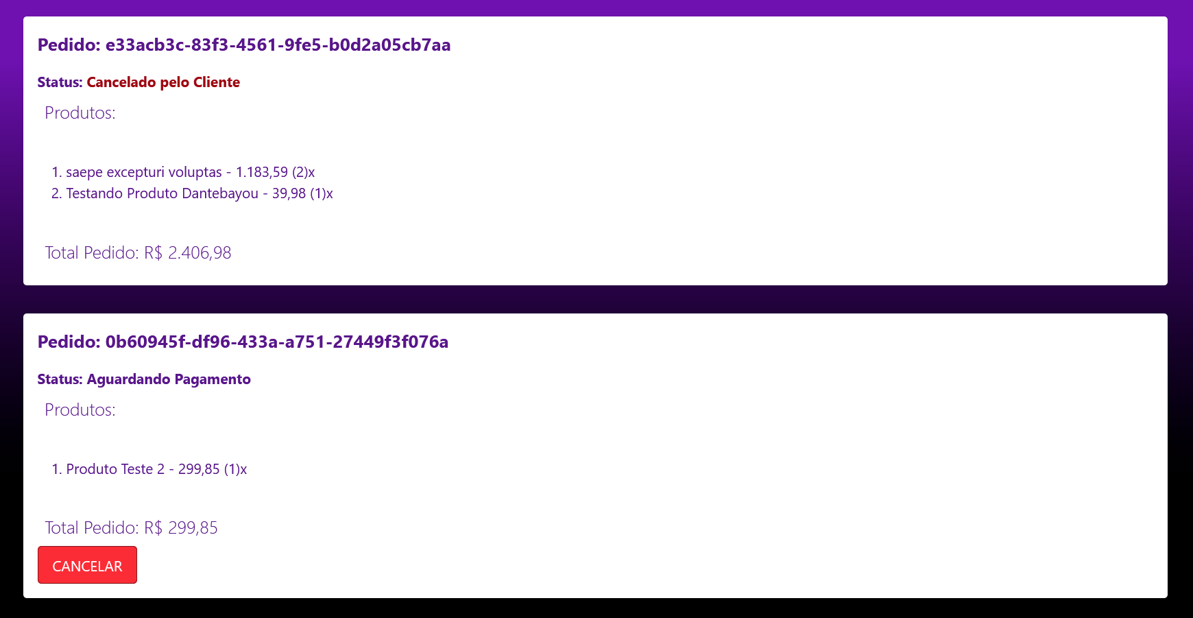 Agora o usuário pode cancelar seus pedidos e assim temos um uso prático do processo do evento que retorna os itens pro estoque.