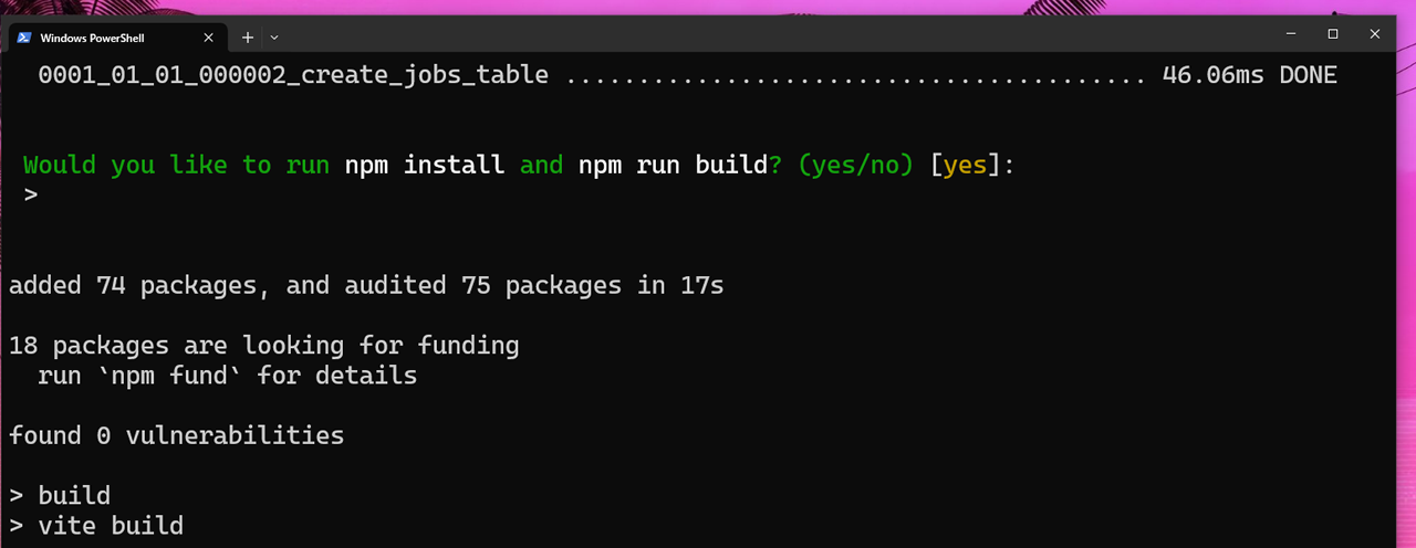Após a escolha acima ele pedirá pra você executar as migrações, então opte por SIM