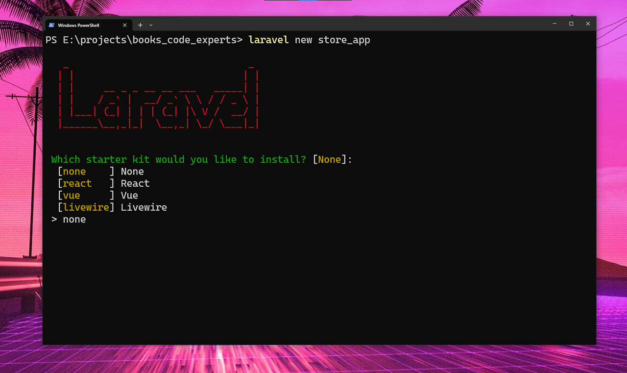 Agora estamos aptos a iniciar um projeto Laravel, por meio do Laravel Installer em nosso CMD ou Windows Terminal.